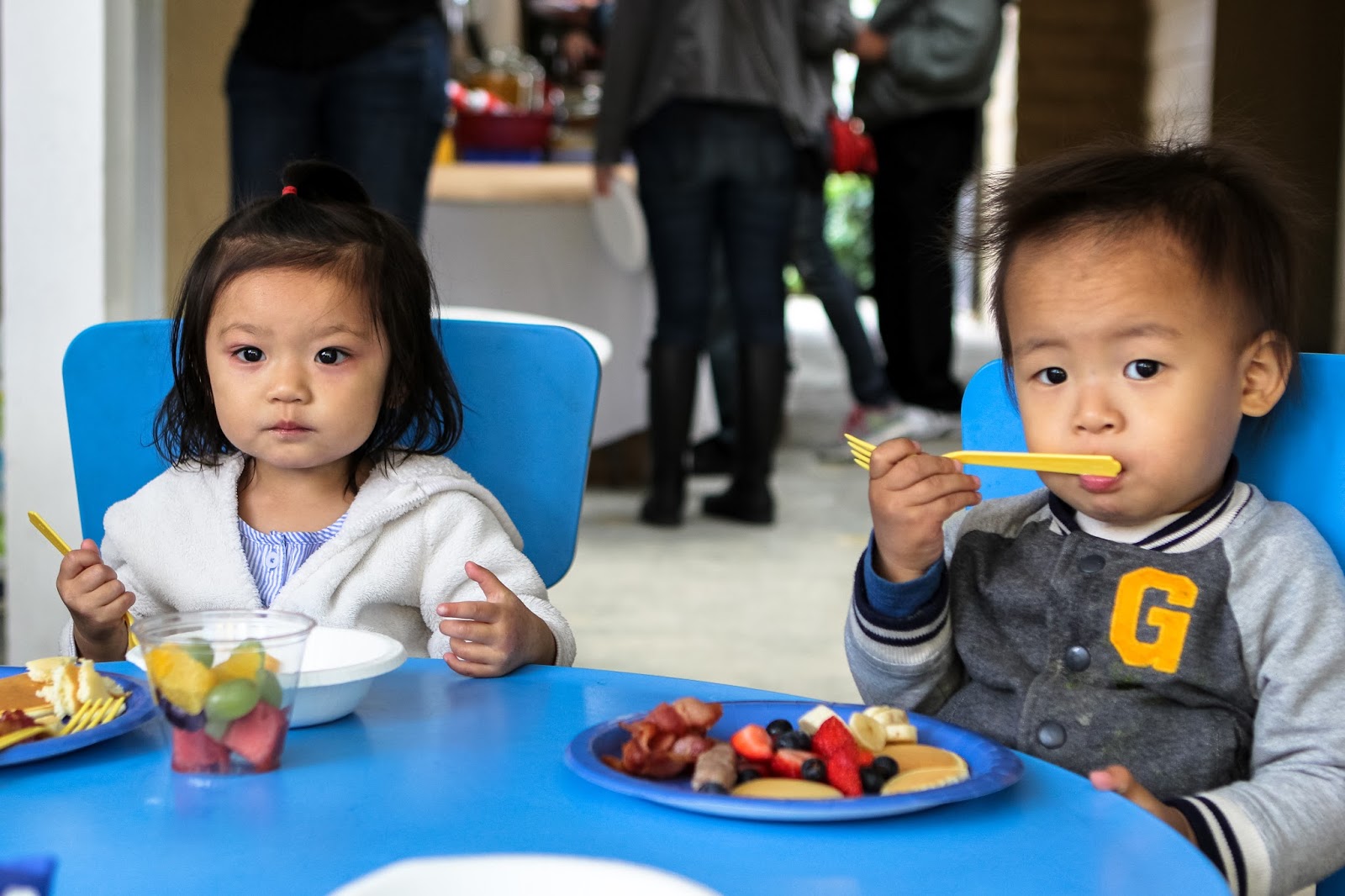 It was a BRUNCH themed party--complete with a cereal bar, mini pancakes, sausages, bacon and of course some good ol' OJ!