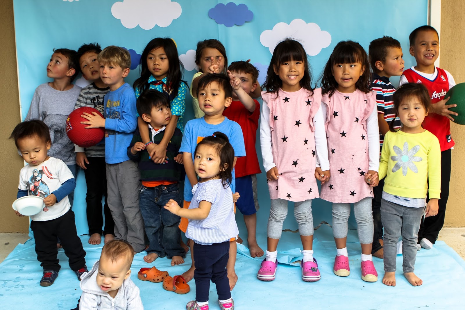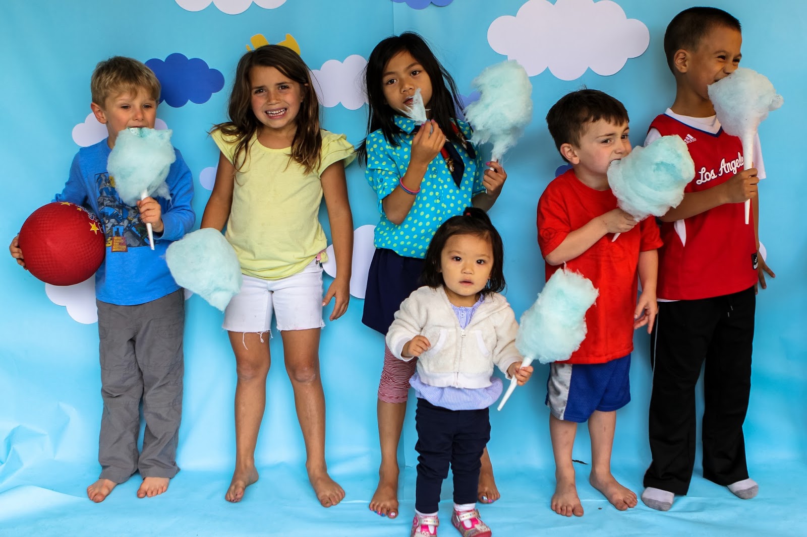 Photo Backdrop! Kept it simple--Die cut clouds on butcher paper!